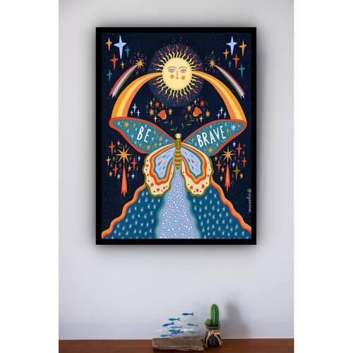Quadro Decorativo Borboleta Be Brave - 70x50cm - Cor: Moldura Preta