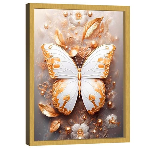 Quadro Decorativo Borboleta E Enfeites Quadro Decorativo Borboleta e Enfeites Moldura Dourada - 84x54cm - Especificações