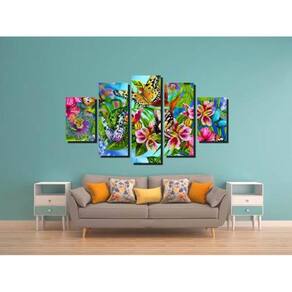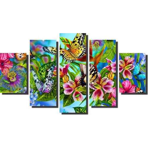 Quadro Decorativo Borboleta Flores 5 Peças Para Sala,Quarto Quadro decorativo borboleta flores 5 peças para sala,quarto