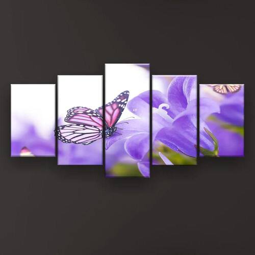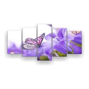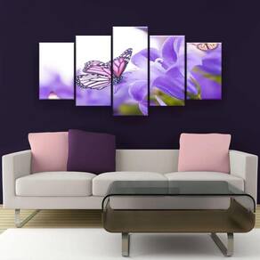 Quadro Decorativo Borboleta Monarca Flor Lilás 129x61 Sala