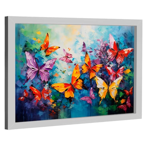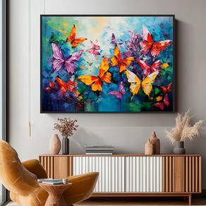Quadro Decorativo Borboletas Estilo Pintura Moldura Branca - 150x100cm -