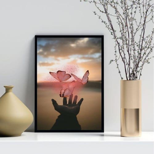 Quadro decorativo borboletas mágicas rosa 33x24cm Moldura: madeira preta Informações do produto tire todas as suas dúvidas no descritivo abaixo: decoração para quarto, sala, cozinha, escritório, área gourmet e muito mais. Chega de paredes vazias medidas - cada peça tem 33x24cm a4 . Material do papel - papel fotográfico brilhante de altíssima resolução acabamento - todos os quadros são acompanhados de uma película de acetato para proteção da imagem. - os quadros são embalados de forma segura com plástico bolha com camada dupla de acordo com o tamanho dos quadros. Garantia - garantia de 3 meses. Meu quadro chegou. Como posso fixá-lo Você precisa apenas de um martelo e um prego, pois os quadros já vão acompanhados de penduradores. Esta é a forma mais indicada. Caso prefira, você pode utilizar uma fita dupla face neste caso, sugerimos de alta qualidade para evitar que descole e seu quadro caia . Como posso limpar meu quadro A limpeza é feita como um móvel comum da sua casa. Apenas um pano seco ou espanador são suficientes para tal Ean: 7898153292648