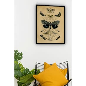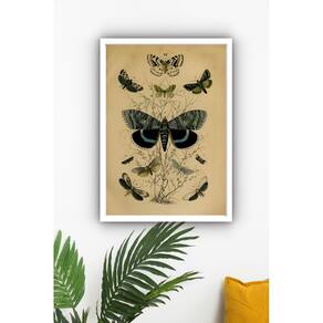 Quadro Decorativo Borboletas Retrô - 70x50cm - Cor: Moldura Branca