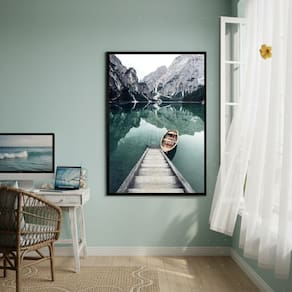 Quadro Decorativo Bote No Lago 70x50cm Mold Preta