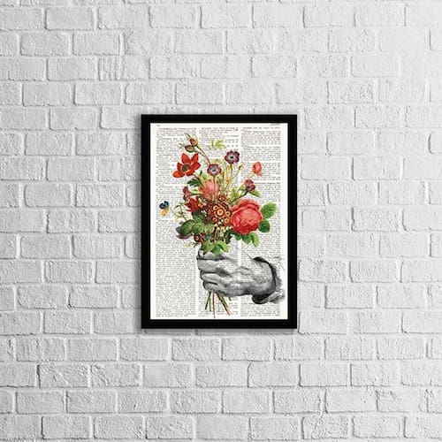 Quadro Decorativo Bouquet de Flores - Tamanho: A4 (20 x 30) / Acabamento: Película de acetato / Moldura: Madeira preta