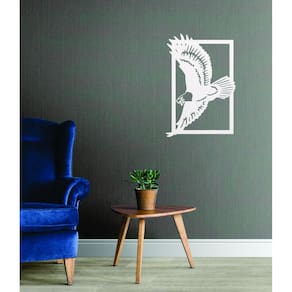 Quadro Decorativo Branco Mdf Aguia Rasante 40X20Cm