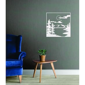 Quadro Decorativo Branco Mdf Arvore Nas Montanhas 40X20Cm