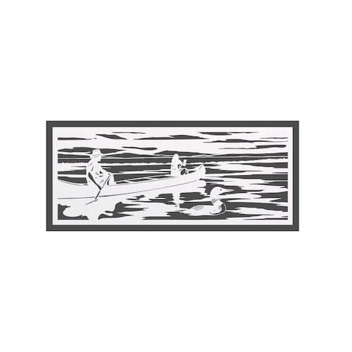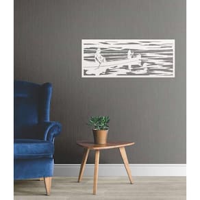 Quadro Decorativo Branco Mdf Barco Pescadores 40X20Cm