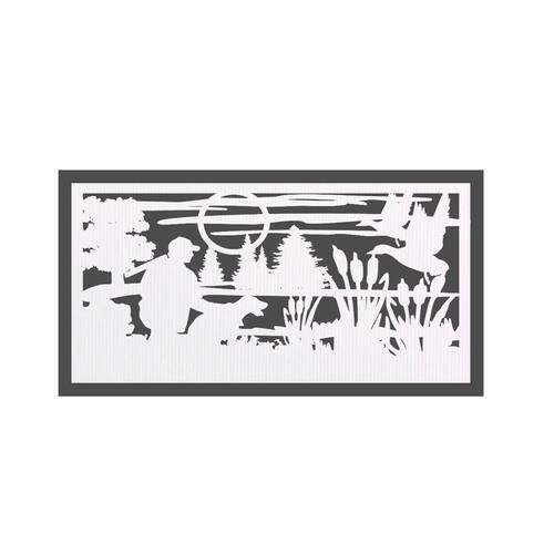 Quadro Decorativo Branco Mdf Caçador E Cachorro 40X20Cm