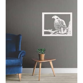 Quadro Decorativo Branco Mdf Gavião 40X20Cm