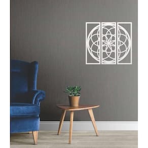 Quadro Decorativo Branco Mdf Mandala Linear 40X20Cm