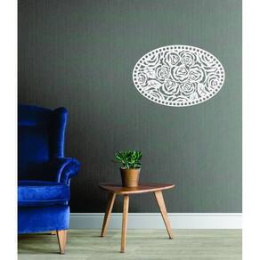 Quadro Decorativo Branco Mdf Oval Rosas 40X20Cm