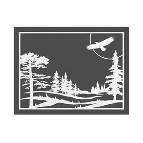Quadro Decorativo Branco Mdf Paisagem Noturna Aguia 40X20Cm