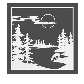 Quadro Decorativo Branco Mdf Paisagem Noturna Floresta 40X20