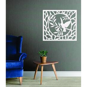 Quadro Decorativo Branco Mdf Passaro Estilizado 40X20Cm