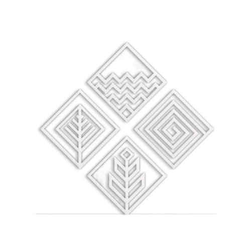 Quadro Decorativo Branco Mdf Quatro Elementos Maori 40X20Cm