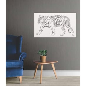 Quadro Decorativo Branco Mdf Tigre 40X20Cm