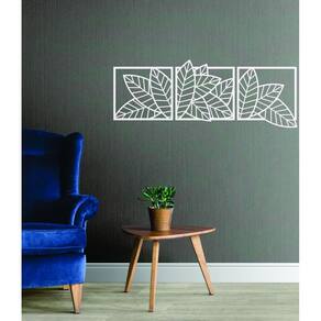 Quadro Decorativo Branco Mdf Trio Folhas Linear 40X20Cm