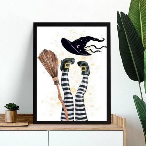 Quadro decorativo bruxa cansada 45x34cm - com vidro Cor: moldura branca Informações do produto tire todas as suas dúvidas no descritivo abaixo: decoração para quarto, sala, cozinha, escritório, área gourmet e muito mais. Chega de paredes vazias medidas - cada peça tem 45x34cm a3 . Material do papel - papel fotográfico brilhante de altíssima resolução acabamento - todos os quadros são acompanhados de vidro para proteção da imagem. - moldura em madeira maciça na cor preta ou branca conforme produto escolhido e pendurador . - os quadros são embalados de forma segura com plástico bolha com camada dupla de acordo com o tamanho dos quadros. - de 3 meses. Meu quadro chegou. Como posso fixá-lo Você precisa apenas de um martelo e um prego, pois os quadros já vão acompanhados de penduradores. Esta é a forma mais indicada. Como posso limpar meu quadro A limpeza é feita como um móvel comum da sua casa. Apenas um pano seco ou espanador são suficientes para tal Ean: 7901039750795
