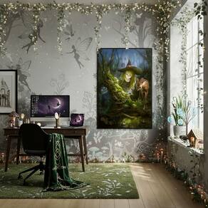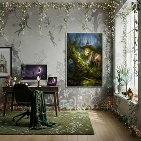 Quadro Decorativo Bruxinha na Floresta Encantada - 70x50cm - Cor: Moldura Preta