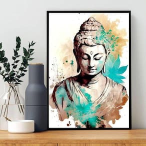 Quadro decorativo buda aquarela turquesa 45x34cm