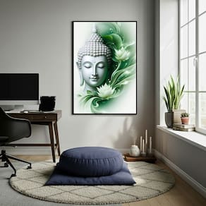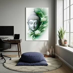 Quadro Decorativo Buda Em Verde 70x50cm Mold Preta