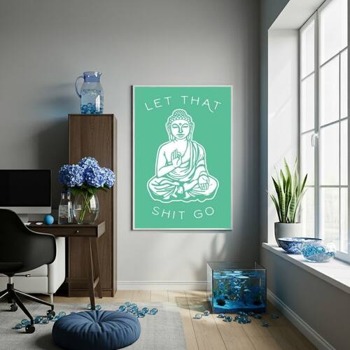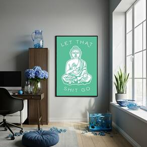 Quadro Decorativo Buda Let That Shit Go - 70x50cm - Cor: Moldura Branca