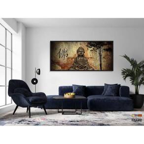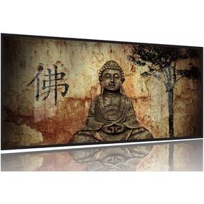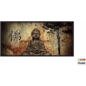 Quadro Decorativo Buda Marron Celestial 130x60 Moldura Preta 2x2