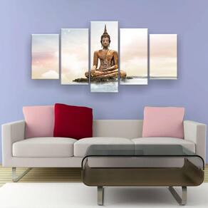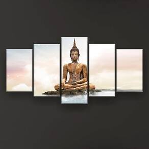 Quadro Decorativo Buda Nuvens 5pc 129x61