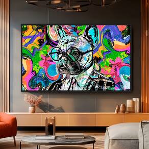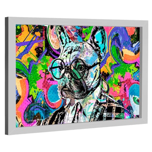 Quadro Decorativo Buldogue Pop Art Moldura Branca - 84x54cm -