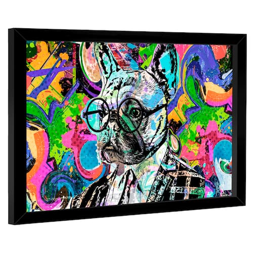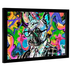 Quadro Decorativo Buldogue Pop Art Moldura Preta - 60x40cm -