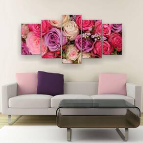 Quadro Decorativo Buquê Rosas Casamento 129x61 Sala Quarto