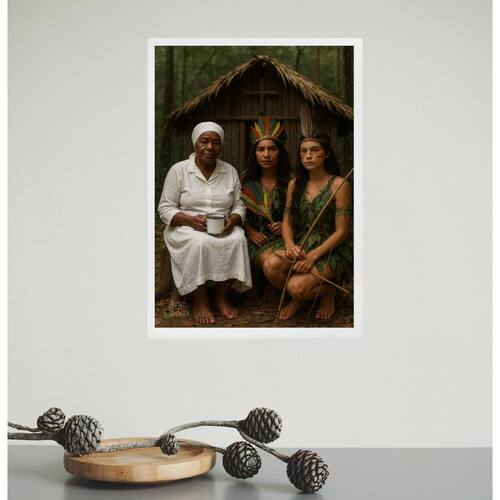 Quadro Decorativo Caboclas e Preta Velha 45x34cm - Cor: Moldura preta