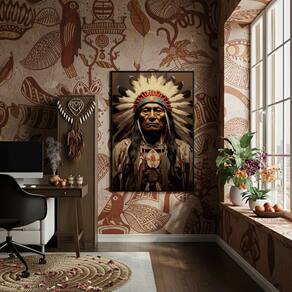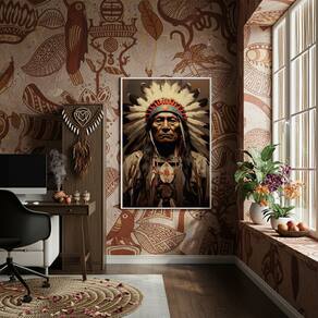 Quadro Decorativo Caboclo Chefe Indígena - 70x50cm - Cor: Moldura Branca