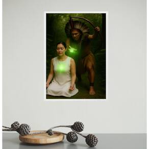Quadro Decorativo Caboclo e Médium 45x34cm - Cor: Moldura preta