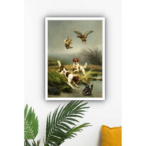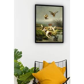 Quadro Decorativo Caçada Inglesa Vintage - 70x50cm - Cor: Moldura Preta