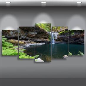 Dimensões do Produto: Quadro decorativo Mosaico de 5 Peças: Tamanho total de 125x60 cm Comprimento x Altura 02 Peças menores de 25x40 cm cada 02 Peças Médias de 25x50 cm cada 01 Peça Central de 25x60 cm. Espaçamento sugerido entre as peças 1 cm Espessura do produto 9 mm