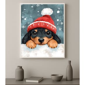 Quadro Decorativo Cachorrinho De Natal 45x34cm - com vidro - Cor: Moldura preta