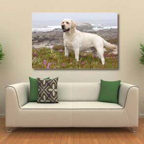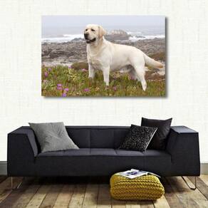 Quadro decorativo Cachorro Labrador Paisagem com Tela de Tec