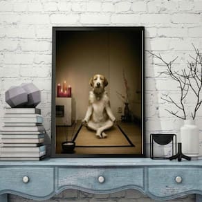 Quadro decorativo cachorro meditando 45x34cm Moldura: madeira preta Informações do produto tire todas as suas dúvidas no descritivo abaixo: decoração para quarto, sala, cozinha, escritório, área gourmet e muito mais. Chega de paredes vazias. Medidas - cada peça tem 45x34cm a3 . Material do papel - papel fotográfico brilhante de altíssima resolução acabamento - todos os quadros são acompanhados de uma película de acetato para proteção da imagem. - os quadros são embalados de forma segura com plástico bolha com camada dupla de acordo com o tamanho dos quadros. Garantia - garantia de 3 meses. Meu quadro chegou. Como posso fixá-lo Você precisa apenas de um martelo e um prego, pois os quadros já vão acompanhados de penduradores. Esta é a forma mais indicada. Caso prefira, você pode utilizar uma fita dupla face neste caso, sugerimos de alta qualidade para evitar que descole e seu quadro caia . Como posso limpar meu quadro A limpeza é feita como um móvel comum da sua casa. Apenas um pano seco ou espanador são suficientes para tal