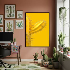 Quadro Decorativo Cacto Amarelo - 70x50cm Mold Branca