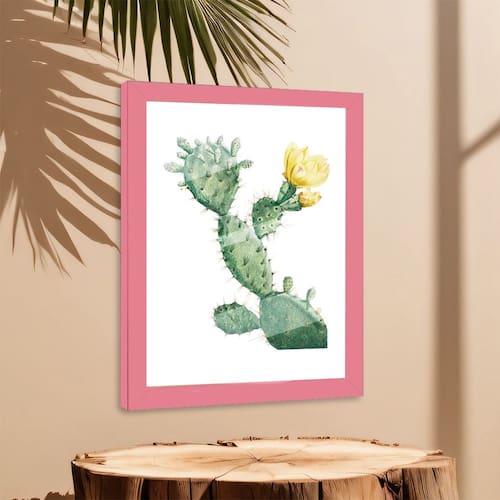 Quadro Decorativo Cacto Floral Sala Quarto + Vidro A4 - Cor: Rosa