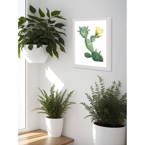 Quadro Decorativo Cacto Floral Sala Quarto + Vidro A4 - Cor: Branco