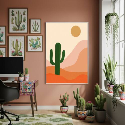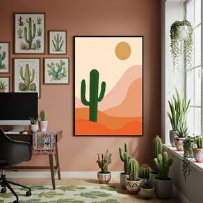 Quadro Decorativo Cacto No Deserto - 70x50cm Mold Preta