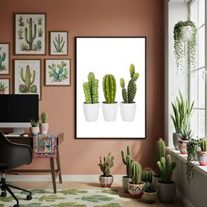 Quadro Decorativo Cactos Pequenos - 70x50cm Mold Branca