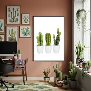 Quadro Decorativo Cactos Pequenos - 70x50cm Mold Preta