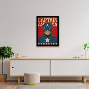 Quadro Decorativo Capitão América Vintage - Tamanho: A4 (20 x 30) / Acabamento: Película de acetato / Moldura: Madeira preta