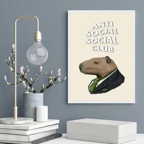 Quadro decorativo capivara anti social 33x24cm Moldura: madeira preta Informações do produto tire todas as suas dúvidas no descritivo abaixo: decoração para quarto, sala, cozinha, escritório, área gourmet e muito mais. Chega de paredes vazias medidas - cada peça tem 33x24cm a4 . Material do papel - papel fotográfico brilhante de altíssima resolução acabamento - todos os quadros são acompanhados de uma película de acetato para proteção da imagem. - os quadros são embalados de forma segura com plástico bolha com camada dupla de acordo com o tamanho dos quadros. Garantia - garantia de 3 meses. Meu quadro chegou. Como posso fixá-lo Você precisa apenas de um martelo e um prego, pois os quadros já vão acompanhados de penduradores. Esta é a forma mais indicada. Caso prefira, você pode utilizar uma fita dupla face neste caso, sugerimos de alta qualidade para evitar que descole e seu quadro caia . Como posso limpar meu quadro A limpeza é feita como um móvel comum da sua casa. Apenas um pano seco ou espanador são suficientes para tal