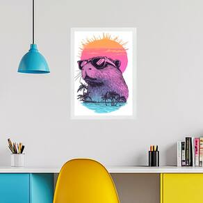 Quadro Decorativo Capivara Verão - Summer Time 45x34cm - com vidro - Cor: Moldura preta