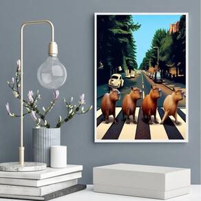 Quadro decorativo capivaras abbey road 33x24cm Moldura: madeira branca Informações do produto tire todas as suas dúvidas no descritivo abaixo: decoração para quarto, sala, cozinha, escritório, área gourmet e muito mais. Chega de paredes vazias medidas - cada peça tem 33x24cm a4 . Material do papel - papel fotográfico brilhante de altíssima resolução acabamento - todos os quadros são acompanhados de uma película de acetato para proteção da imagem. - os quadros são embalados de forma segura com plástico bolha com camada dupla de acordo com o tamanho dos quadros. Garantia - garantia de 3 meses. Meu quadro chegou. Como posso fixá-lo Você precisa apenas de um martelo e um prego, pois os quadros já vão acompanhados de penduradores. Esta é a forma mais indicada. Caso prefira, você pode utilizar uma fita dupla face neste caso, sugerimos de alta qualidade para evitar que descole e seu quadro caia . Como posso limpar meu quadro A limpeza é feita como um móvel comum da sua casa. Apenas um pano seco ou espanador são suficientes para tal